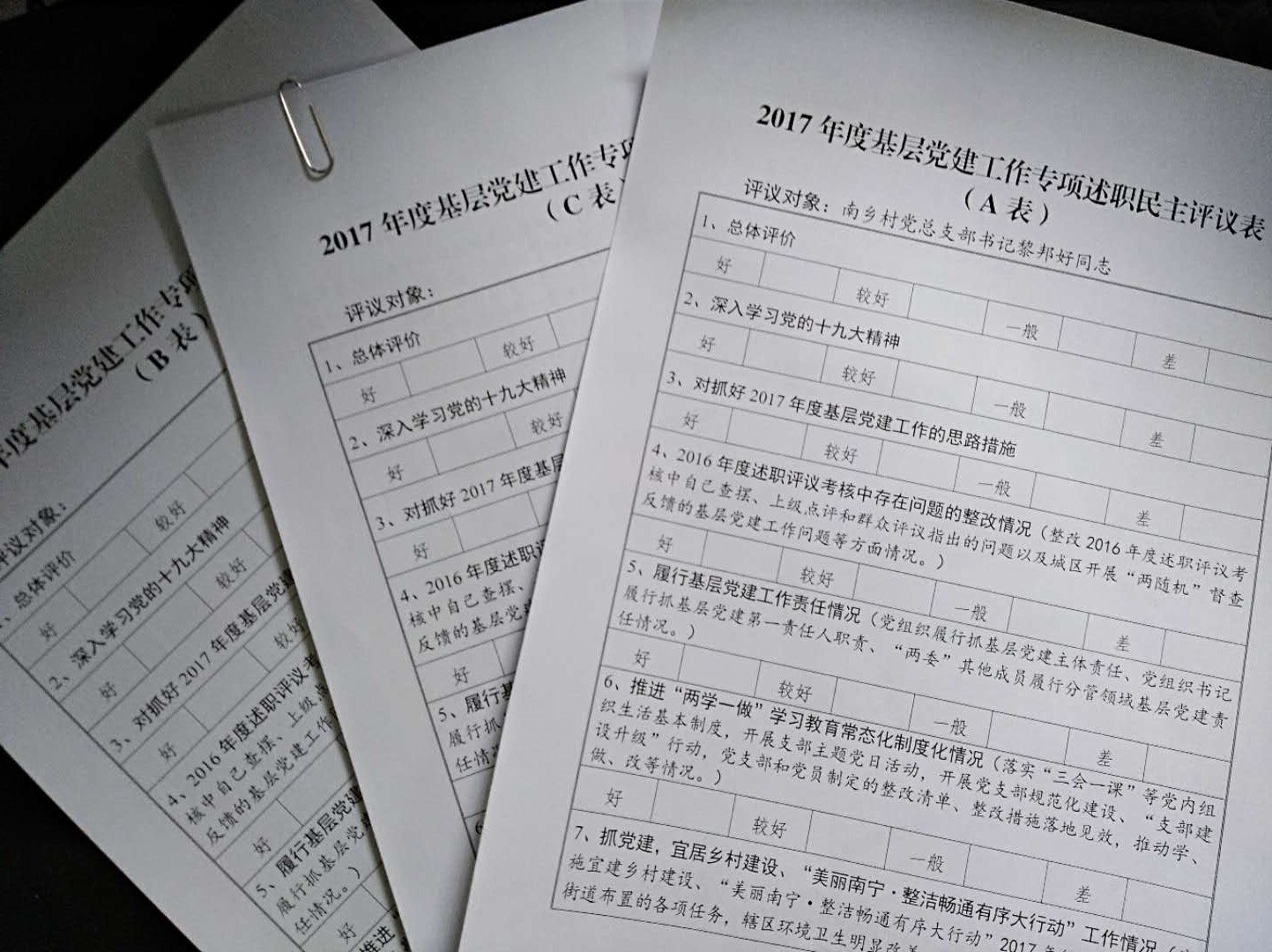 组织街道党建组织员进行民主测评和现场打分