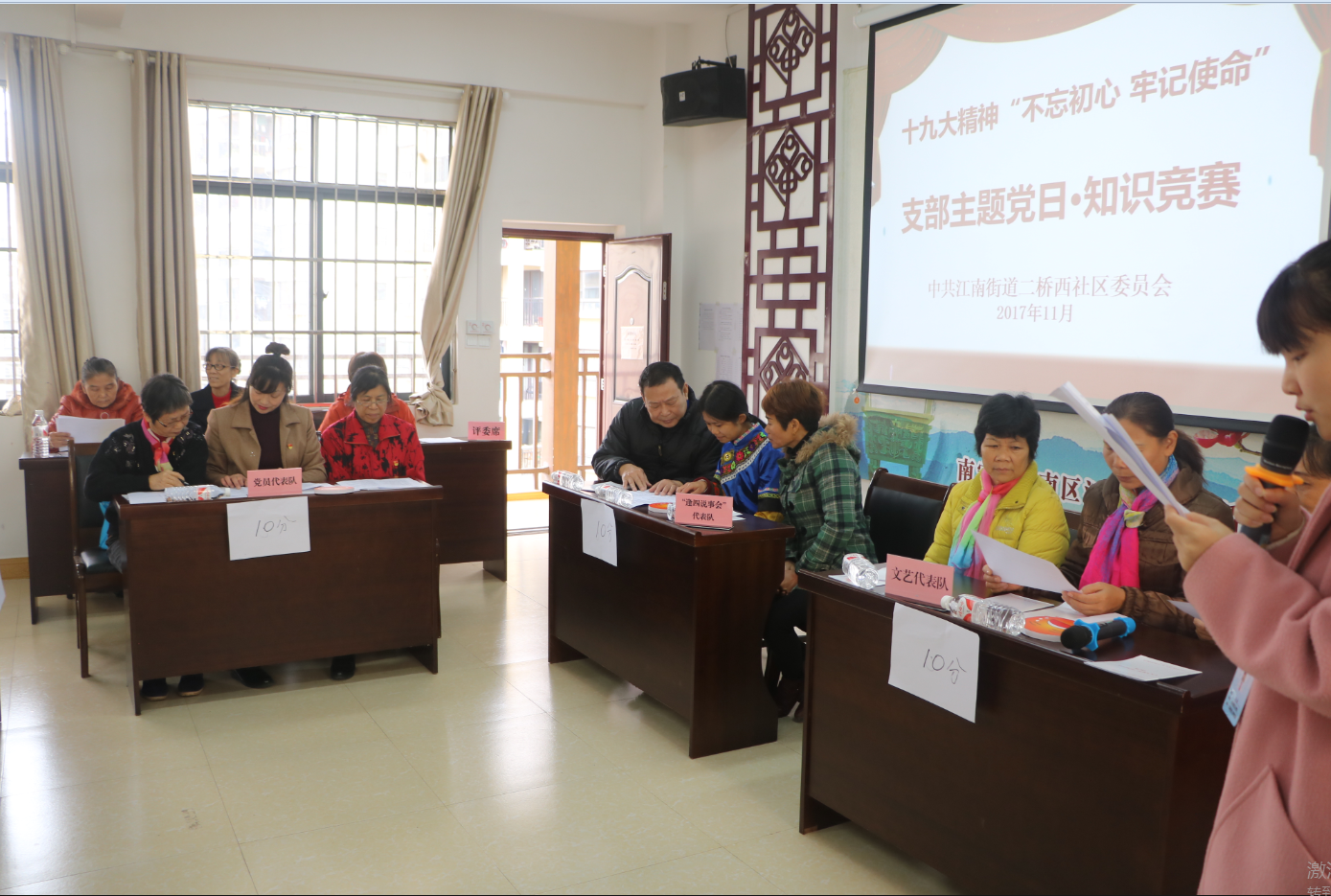 知党情,强党性,不忘对党忠贞的忠心。围绕知党情,强党性,跟党走的主题,二桥西社区党委、二桥南社区党委组织各支部分别开展了一场知识竞赛活动。题目以十九大精神、新党章知识和习近平总书记系列重要讲话精神等为主,通过必答和抢答环节,检验支部党员对党章党规理解掌握的情况,引导社区党员干部深刻学习领会党的十九大精神,激发党员干部坚定理想信念的自觉性,以竞赛的形式补足党员精神之“钙”。
