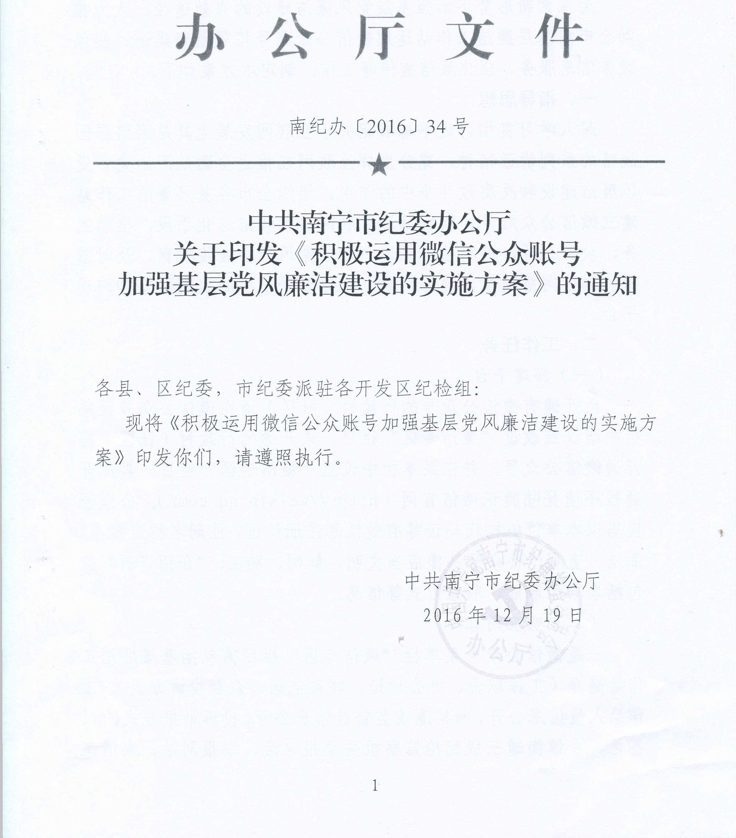 现将南宁市纪委办公厅《关于印发〈积极运用微信公众账号加强基层党风廉洁建设的实施方案〉的通知》(南纪办〔2016〕34号)转发给你们,请遵照执行。