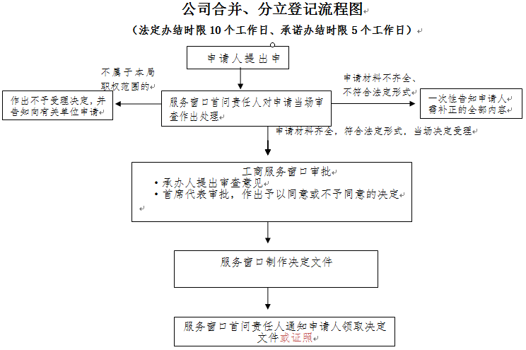 (一)因公司合并申请设立、变更或注销登记提交材料 因合并申请设立、变更或注销登记的公司,除按照本规范提交设立、变更或注销登记材料外,还应当提交以下材料: 1、合并各方签署的合并协议。合并协议应当包括:合并协议各方的名称,合并形式,合并后公司的名称,合并后公司的注册资本,合并协议各方债权、债务的承继方案,解散公司分公司、持有其他公司股权的处置情况,签约日期、地点以及合并协议各方认为需要规定的其他事项。 2、依法刊登公告的报纸样张。合并公告应当包括:合并各方的名称,合并形式,合并前后各公司的注册资本。 3、合并各方公司关于通过合并协议的决议或决定。 ◆ 有限责任公司提交由代表三分之二以上表决权的股东签署的股东会决议。 ◆ 股份有限公司提交由会议主持人及出席会议的董事签署的股东大会会议决议。 ◆一人有限责任公司提交股东签署的书面决定。 ◆国有独资公司提交国务院、地方人民政府或者其授权的本级人民政府国有资产监督管理机构的批准文件。 4、合并各方的营业执照复印件。 5、债务清偿或者债务担保情况的说明。 6、法律、行政法规和国务院决定规定必须报经批准的,提交有关的批准文件或者许可证件复印件。 7、因合并办理公司设立、变更登记的,提交载明合并情况的解散公司的注销证明。 注:1、因合并而解散的公司不进行清算的,注销登记可以不提交清算报告,但是合并协议中载明解散公司需先行办理清算的除外。 2、因合并新设公司的经营范围或存续公司新增的经营范围中,涉及法律法规规定应当在登记前报经有关部门审批的,应当在登记前报有关部门审批,凭有关部门的许可文件、证件办理登记。 3、因合并申请设立登记、变更登记、注销登记,应当自合并公告之日起45日后。 (二)因公司分立申请设立、变更或注销登记提交材料规范 因分立申请设立、变更或注销登记的公司,除按照本规范提交设立、变更或注销登记材料,还应当提交以下材料: 1、公司分立的决议或决定。分立决议或决定应当包括:分立形式,分立前后公司的名称,分立后公司的注册资本,分立后原公司债权、债务的承继方案,公司分公司、持有其他公司股权的处置情况。 ◆ 有限责任公司提交由代表三分之二以上表决权的股东签署的股东会决议。 ◆ 股份有限公司提交由会议主持人及出席会议的董事签署的股东大会会议记录。 ◆ 一人有限责任公司提交股东签署的书面决定。 ◆ 国有独资公司提交国务院、地方人民政府或者其授权的本级人民政府国有资产监督管理机构的批准文件。 2、依法刊登公告的报纸样张。分立公告应当包括:分立各方的名称,分立形式,分立前后各公司的注册资本。 3、分立各方的营业执照复印件。 4、债务清偿或者债务担保情况的说明。 5、法律、行政法规和国务院决定规定必须报经批准的 ,提交有关的批准文件或者许可证件复印件。 6、因分立申请公司设立登记的,提交载明分立情况的存续公司的变更证明或解散公司的注销证明。 注:1、因分立而解散的公司不进行清算的,注销登记可以不提交清算报告,但是分立决议或决定中载明解散公司需先行办理清算的除外。 2、因分立新设公司的经营范围中,涉及法律法规规定应当在登记前报经有关部门审批的,应当在登记前报有关部门审批,凭有关部门的许可文件、证件办理登记。 3、因分立申请设立登记、变更登记、注销登记,应当自分立公告之日起 45日后。 说明: 1、办理企业名称预先核准、登记、备案等,可登录“中国企业登记网”(http://qyj.saic.gov.cn)下载相关表格。 2、提交的申请书与其它申请材料应当使用A4型纸。 3、提交材料未注明提交复印件的,应当提交原件;提交复印件的,应当注明“与原件一致”并由申请人签署,或者由其指定的代表或共同委托的代理人加盖公章或签字。 4、提交材料涉及签署的,未注明签署人的,自然人由本人签字;法人和其他组织由法定代表人或负责人签字,并加盖公章。 |