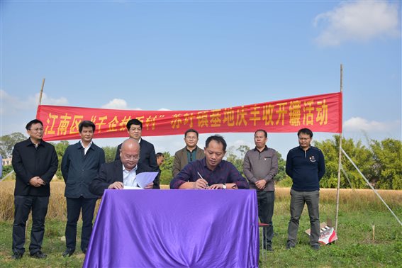 在全国上下深入学习宣传贯彻党的十九大精神之际,12月4日,江南区在苏圩镇佳棉村那棉坡“千企扶千村”富硒现代生态种植示范基地开展“千企扶千村”精准扶贫行动(苏圩)基地庆丰收开镰活动。