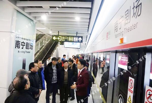 在南宁轨道交通2号线工作人员的引导下,老干部们兴致勃勃地参观了南宁剧场站具有壮乡风情和绿城元素的大气设计及各种服务设施,听取了情况介绍。挟带着现代化气息的电客车搭载着老干部们,在改革开放的江南热土地层深处畅通无阻地向玉洞站疾驰,仅费时19分钟,然后中转返回南宁剧场站。