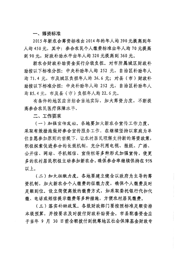 关于提高2015年全区新型农村合作医疗筹资标准的通知