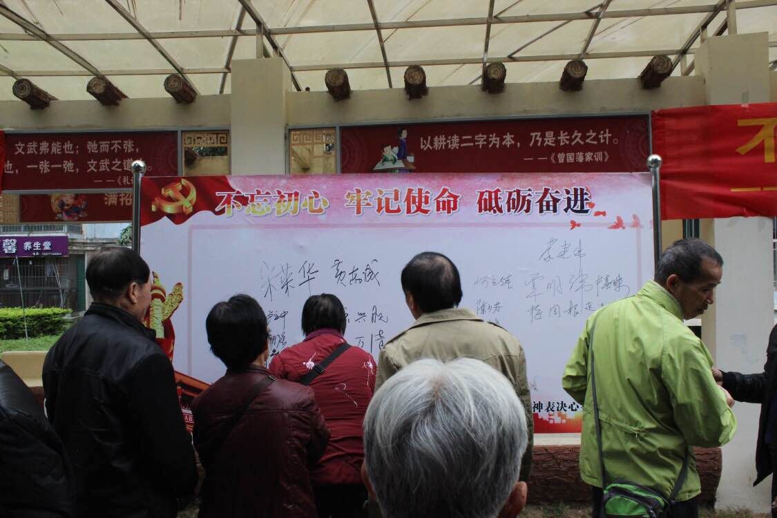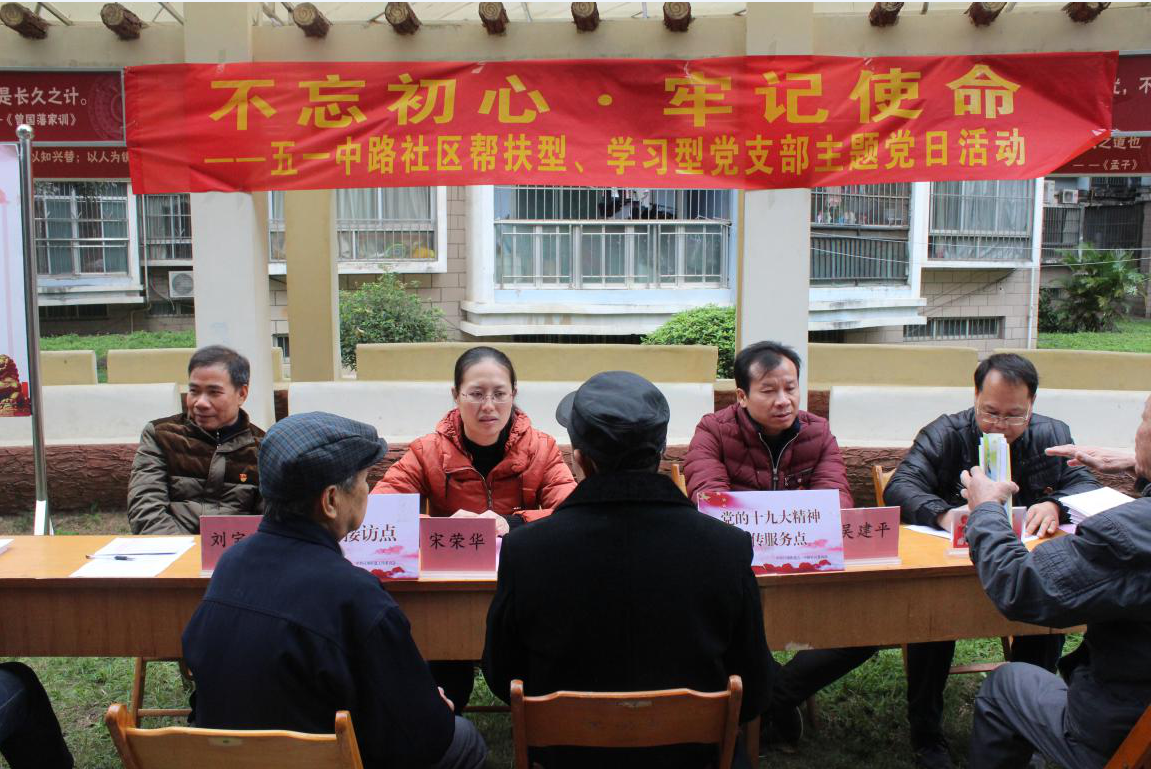 解民忧,暖民心,不忘无私奉献的爱心。小区活动场地脏乱、广场舞扰民等问题一直困扰着五一中路丽江村小区居民的生活。为此,五一中路社区党委以开展支部主题党日为契机,在丽江村文化长廊组织开展“学十九大精神·做合格党员”签名承诺以及环境整治志愿服务活动。社区党员率先垂范,承诺自觉遵守文明公约,身体力行,积极投身小区环境整治当中。五一中路社区党委号召党员从点滴做起,从小事做起,努力营造人人维护社会环境的良好氛围,使群众切实感受到党的关心、党的温暖。